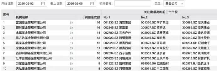 本周调研总次数排名前十基金公司
