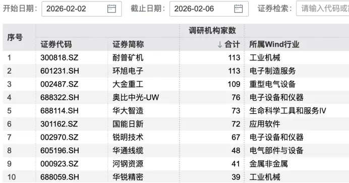 2月2日—2月6日),机构调研上市公司热情不减。机械设备、电子、电力设备、基础化工等行业调研热度高涨,电子、电力设备行业相关上市公司获调研频率较高。