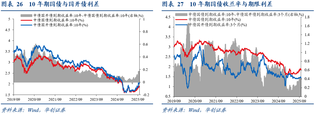 10年国债是无风险利率的标杆品种,我国债券市场成交最活跃的品种有两个:一个是10年国开债,一个是10年国债。两者波动趋势基本一致,但波动幅度不同,这种偏差可以反映债券市场的情绪。此外,长短端利差拉大、收益率曲线陡峭是资金套利的基础,也是债券牛市的基础。